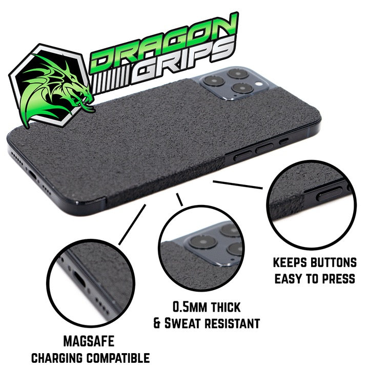 - 🐉 Get a grip on you 12 Mini/Pro/Pro+ with Dragon Grips form fitting rubberized grip accessory. Give your Phone our Computer designed grip set for the iPhone 12 mini extra protection with our sleek, black Phone skin compatible with all Apple iPhone 12 models